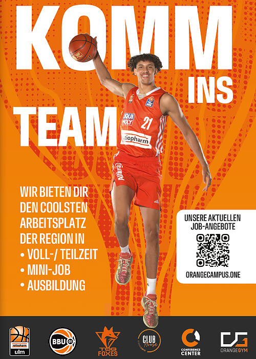 Mit dem Schwung des Erfolges der Profis ist darüber hinaus der drittgrößte Basketballverein Deutschlands entstanden: rund 3.000 Mitglieder, über 30 Nachwuchsteams, an der Spitze die Talentschmiede der OrangeAcademy in der zweiten Liga ProB. Neben den Jugendteams, die ebenfalls die ersten deutschen Meisterschaften einsammeln konnten, trainiert bei uns ein inklusives Special-Team genauso wie die erfolgreichen Ulmer Rollstuhl-Basketballer. Darüber hinaus organisieren wir Basketball-AGs für 30 Grundschulen der Region und bewegen etwa 3.000 Kinder im Jahr mit unserer Mini-Offensive. Die Heimat des Uuulmer Basketballs ist der OrangeCampus und bis auf unsere drei Basketballcourts, öffentlich zugänglich: ClubHouse-Restaurant, das top-moderne OrangeGym, FanShop mit Café, das vielseitige und technisch wegweisend ausgestattete Conference Center und natürlich der großzügige Außenbereich am Donauufer mit Freiplatz, OpenAir-Gym und Gartenterrasse.